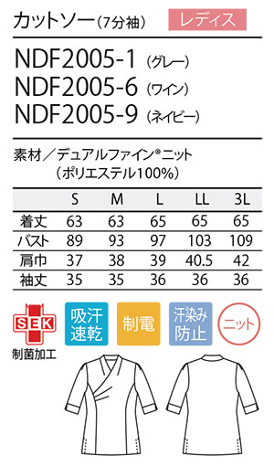 住商モンブラン(MONTBLANC) メディカルユニフォーム NDF2005/カットソー(7分袖)