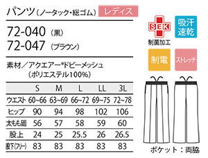 住商モンブラン(MONTBLANC) メディカルユニフォーム 72-040.72-047/パンツ(ノータック・総ゴム)