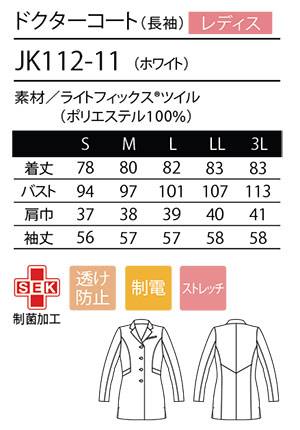 JK112/レディス ドクターコート(長袖) ・ JK192/メンズ ドクターコート(長袖)