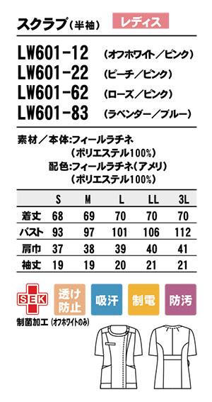 LW601/レディス スクラブ(半袖)
