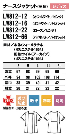 LW812/レディス ナースジャケット(半袖)