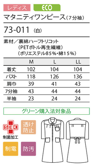 マタニティワンピース(7分袖) [レディス] 来年度廃番予定 |