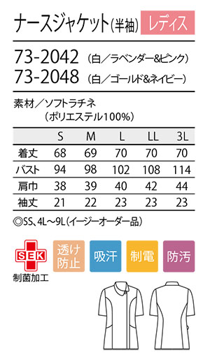 住商モンブラン(MONTBLANC) メディカルユニフォーム 73-2042.73-2048/ナースジャケット(半袖)
