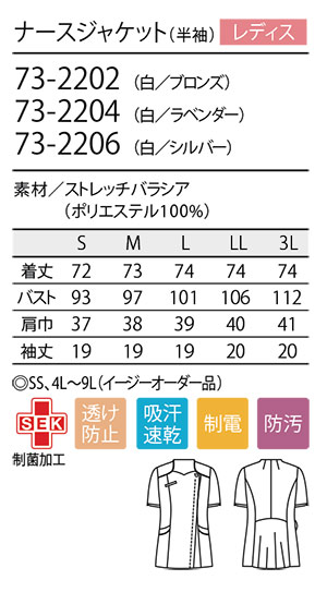 住商モンブラン(MONTBLANC) メディカルユニフォーム 73-2202.73-2204.73-2206/ナースジャケット(半袖)