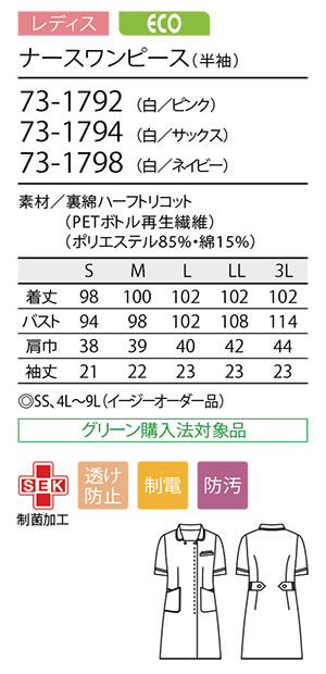 ナースワンピース(半袖) [レディス] 来年度廃番予定 |