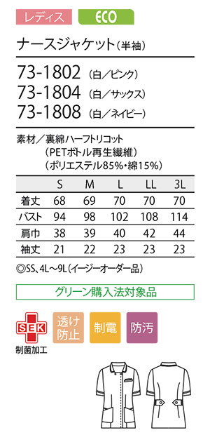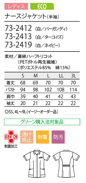 ナースジャケット(半袖) [レディス] 来年度廃番予定 |