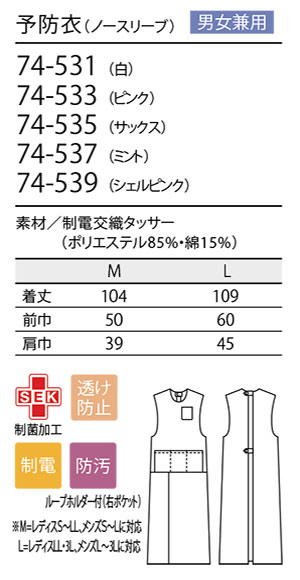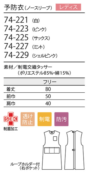 男女兼用 予防衣(ノースリーブ) ・ レディス 予防衣(ノースリーブ)