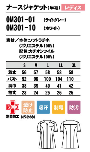 | OM301/レディス ナースジャケット(半袖) |