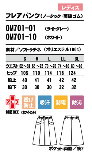 | OM701/レディス フレアパンツ(ノータック・両脇ゴム) |