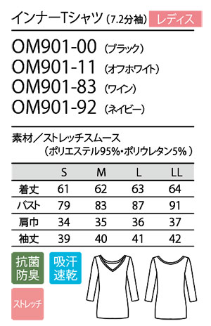住商モンブラン(MONTBLANC) メディカルユニフォーム OM901/インナーTシャツ(7.2分袖)