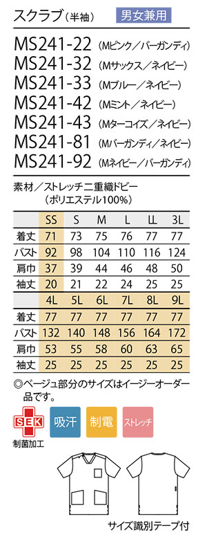 MS241/男女兼用 スクラブ(半袖)