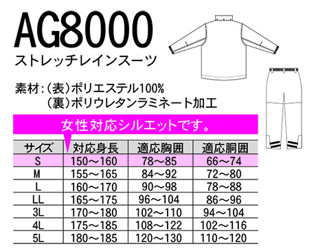 【 AG8000/ストレッチレインスーツ 】