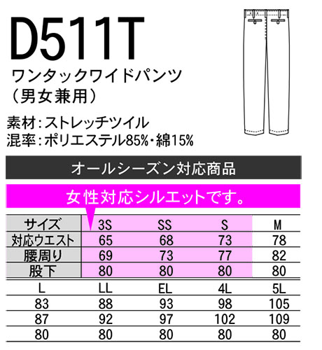D511T/ワンタックワイドパンツ(男女兼用) |