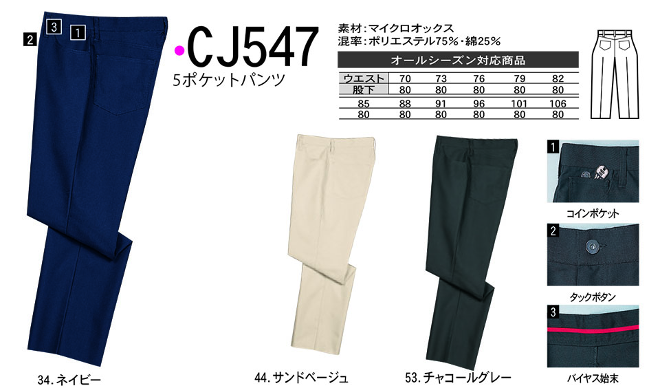 ポリエステル75%・綿25%(オールシーズン対応商品) |