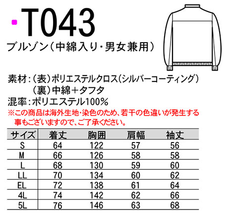 ブルゾン(中綿入り・男女兼用) (次期廃番予定商品) |