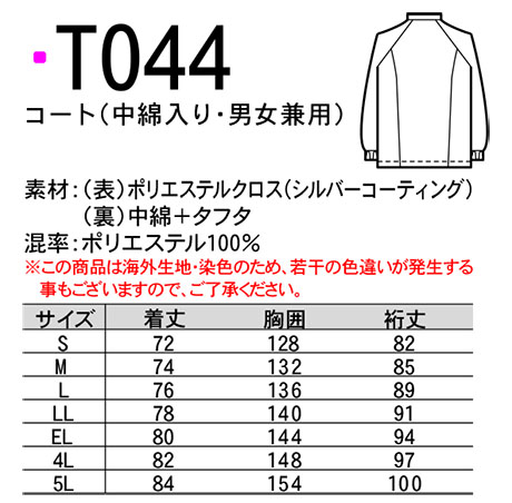 コート(中綿入り・男女兼用) (次期廃番予定商品) |
