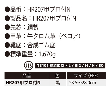| HR207甲プロ付N |