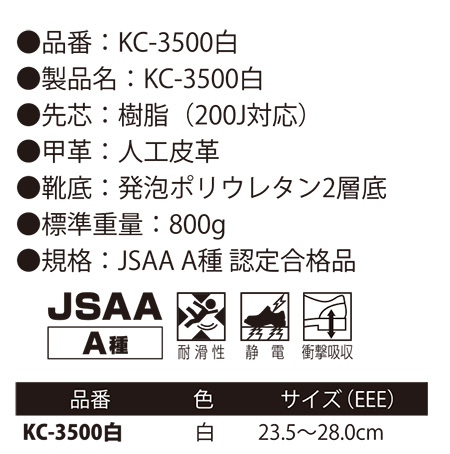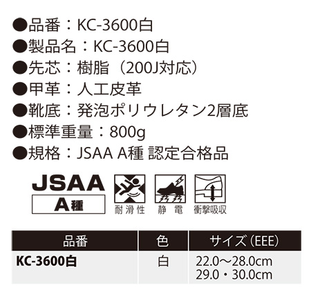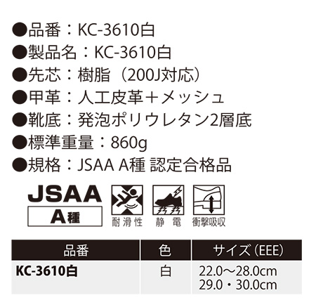 KC-3610白 静電安全スニーカー |