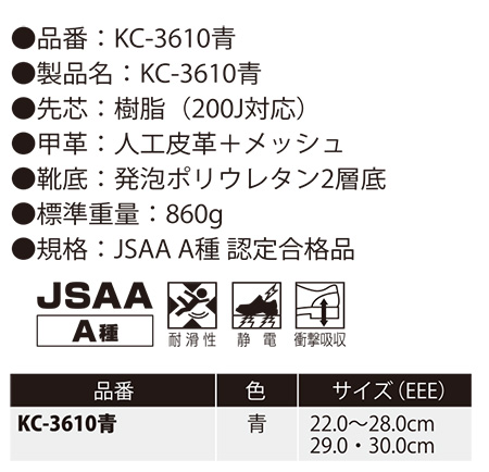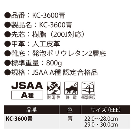 KC-3610青 静電安全スニーカー |