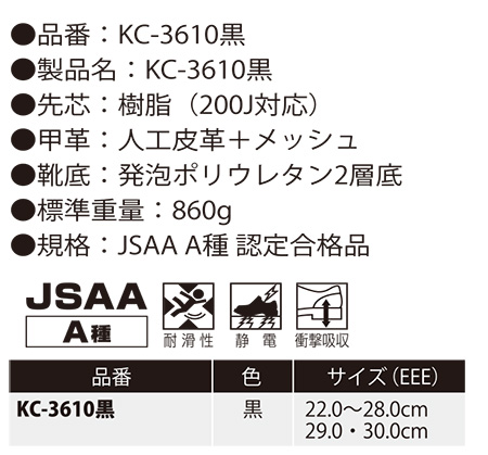 KC-3610黒 静電安全スニーカー |