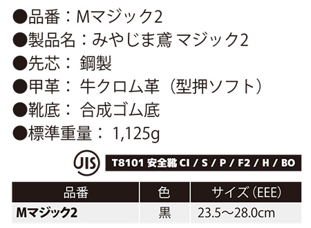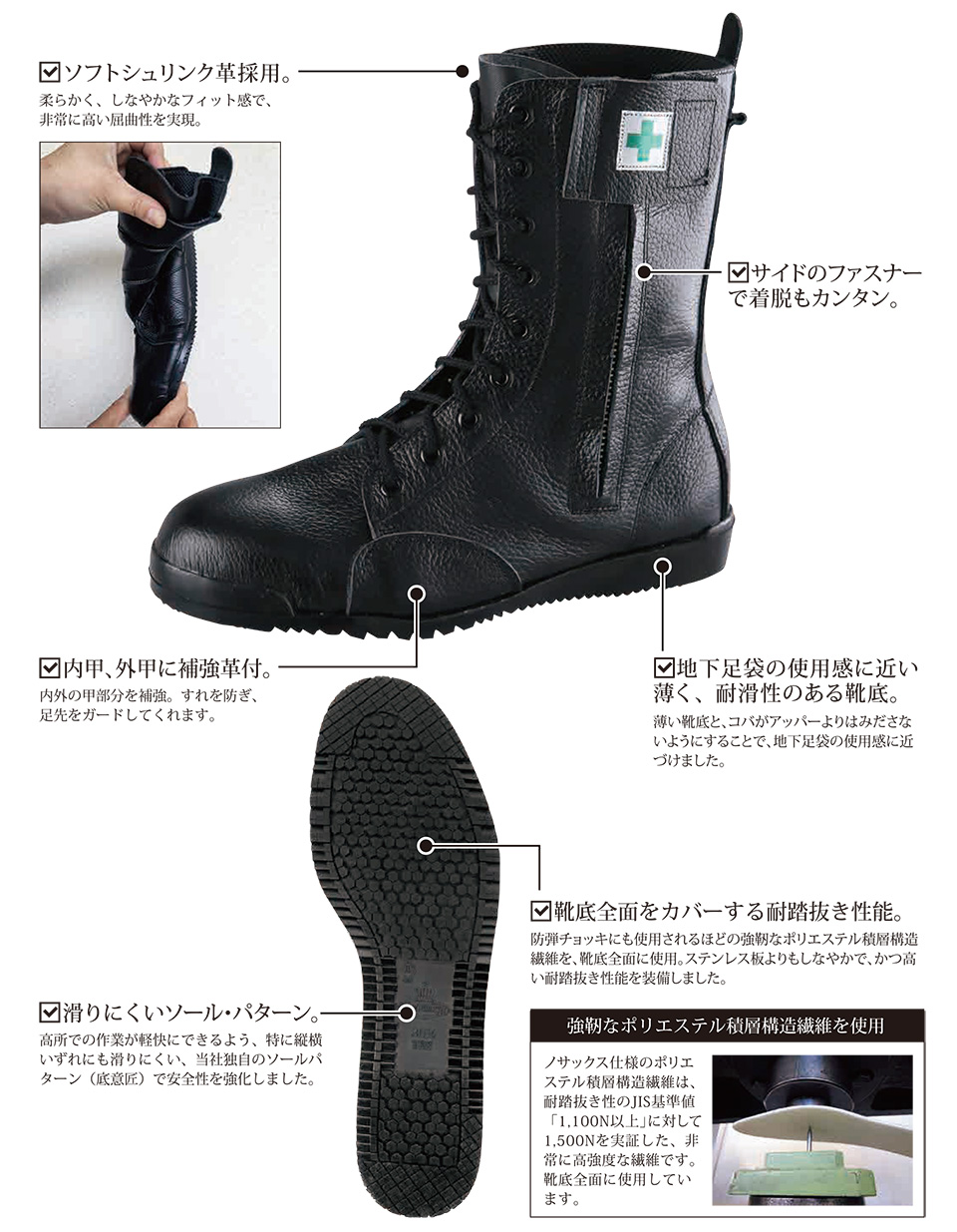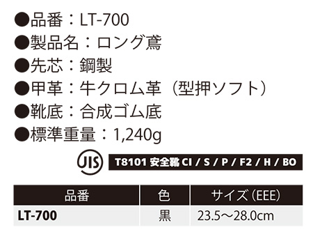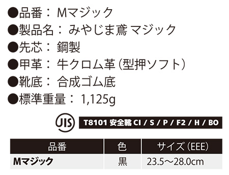 ・靴底: 合成ゴム底 ・JIS T8101 安全靴CI/S/P/F2/H/BO |