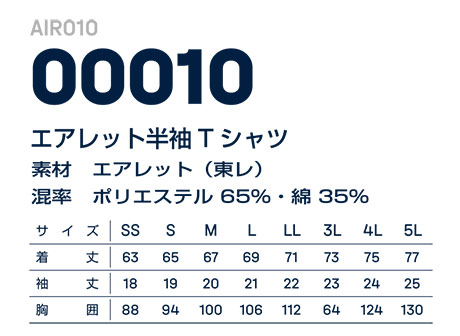 AIR010/00010 エアレット半袖Tシャツ |