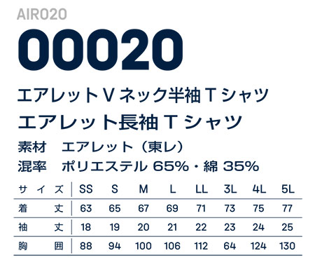 AIR020/00020 エアレッVネックト半袖Tシャツ |