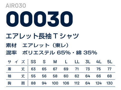 AIR030/00030 エアレット半袖Tシャツ |