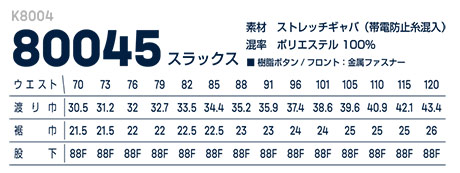 K8006/80065 レディーススラックス(脇ゴム入り[年間共通])