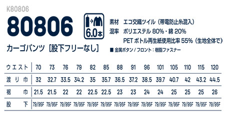 K80806/80806 カーゴパンツ[股下フリーなし] |