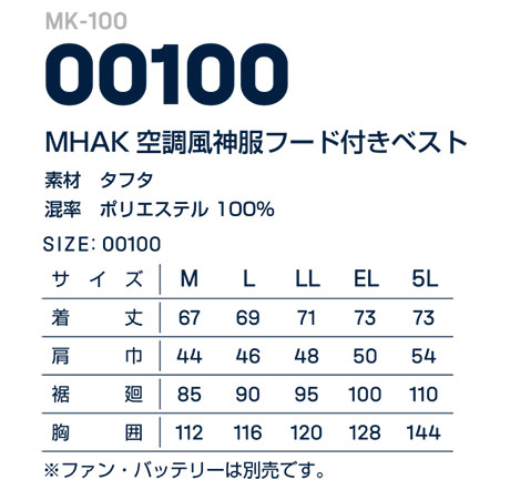 MK-100/00100 MHAK空調風神服フード付きベスト
