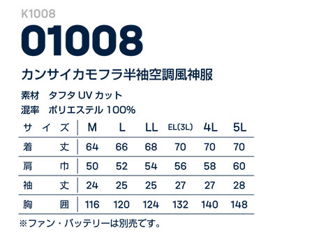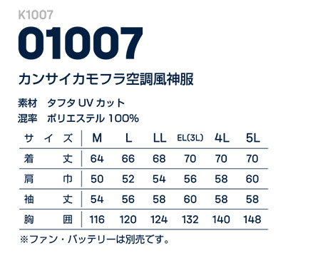 K1008/01008 半袖カンサイカモフラ空調風神服 |