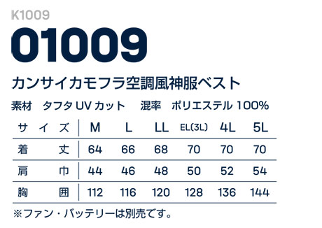 K1009/01009 カンサイカモフラ空調風神服ベスト |