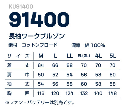 【衣料百貨 大槻】 空冷ファン付き作業服(夏) 「空調風神服」 KU91400/長袖ワークブルゾン