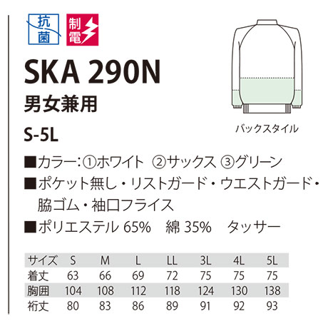 ポケット無し・脇ゴム入・袖口ゴム入 |