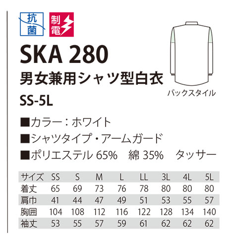 男女兼用シャツ型白衣/SKA280 |