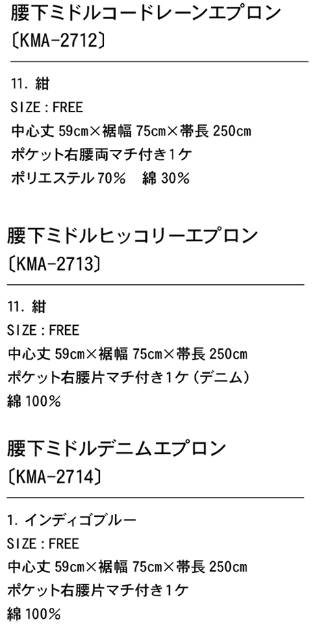 腰下ミドルヒッコリーエプロン/KMA-2713