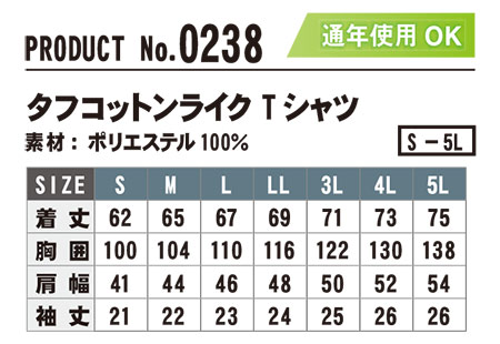 SHINMEN(シンメン株式会社) オールシーズン 作業服 0238/タフコットンライクTシャツ