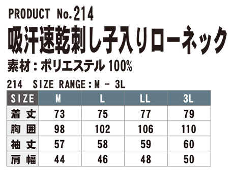 214/吸汗速乾刺し子入りローネック |