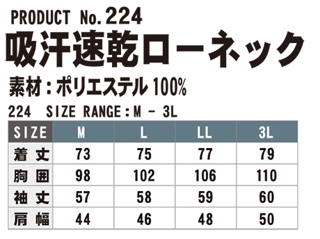 224/吸汗速乾ローネック |