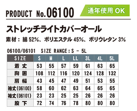 06100/ストレッチライトカバーオール |