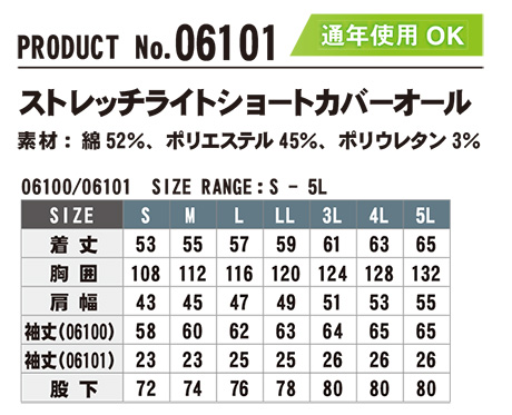 06101/ストレッチライトショートカバーオール |