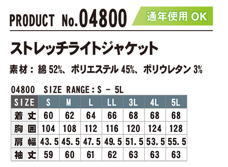 04800/ストレッチライトジャケット |