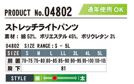 04802/ストレッチライトパンツ |