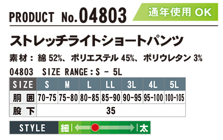 04803/ストレッチライトショートパンツ |