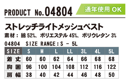 04804/ストレッチライトメッシュベスト |