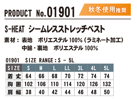 SHINMEN(シンメン株式会社) 秋・冬シーズン 作業服 01901/S-HEATシームレスストレッチベスト