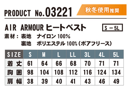 03221/AIR ARMOUR ヒートベスト |