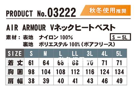 03222/AIR ARMOUR Vネックヒートベスト |