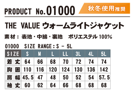 01000/THE VALUE ウォームライトジャケット |